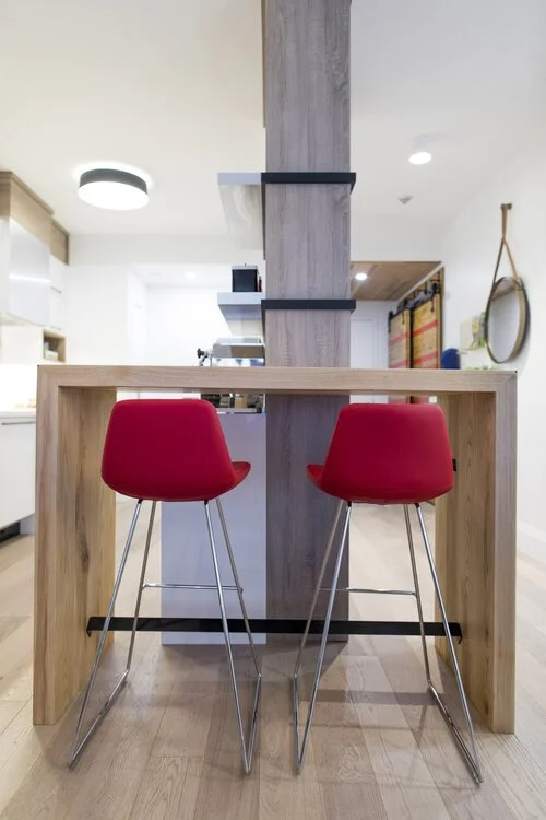 This 1100 sq ft 2 bed and 2 bath condo got a complete makeover courtesy of avenue design inc. The original space was dated and lacking in functionality. We worked with the client to not only make the space flow more easily but also to be more personalized to his aesthetic. Keeping in mind the constraints of working in a condominium, we were able to open up the kitchen and revise the layouts of the bathrooms for a cohesive look.