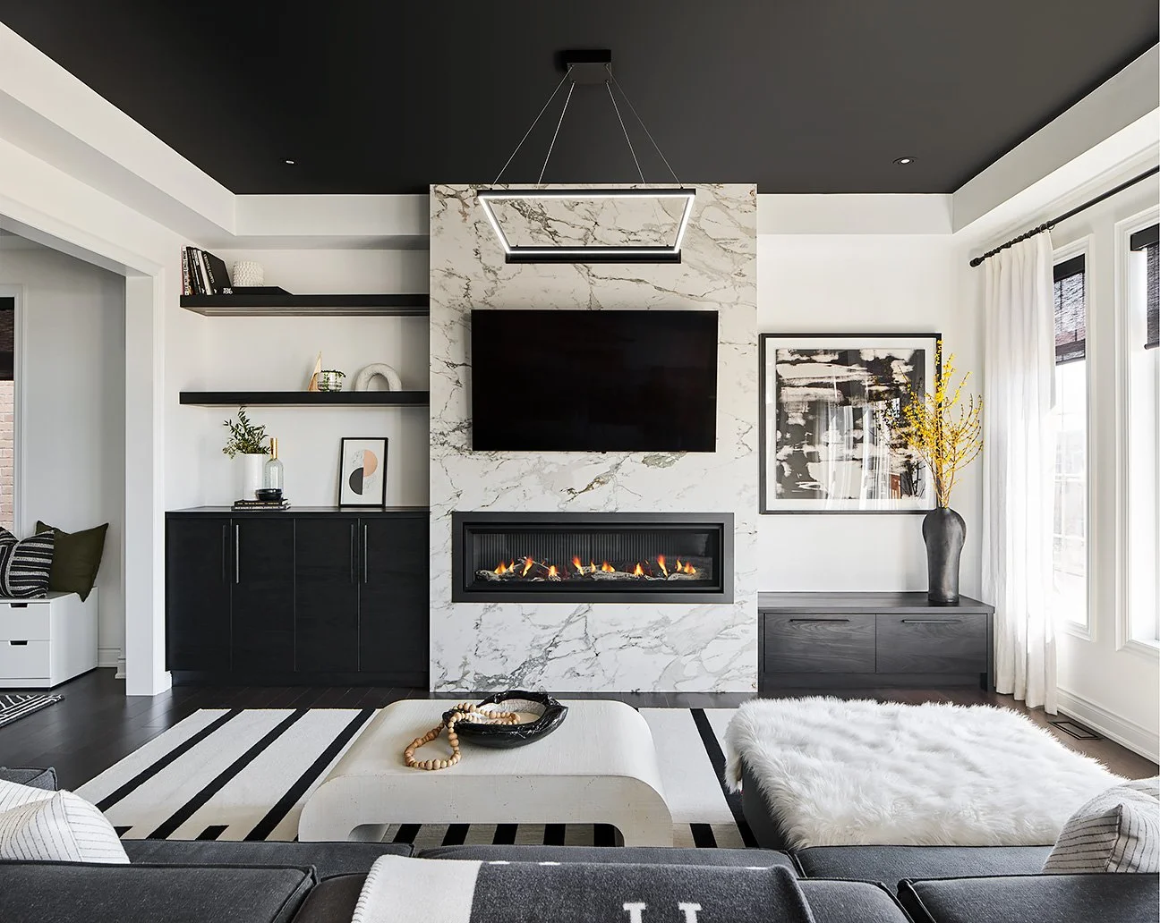 Our clients purchased a bland new build home that needed a huge infusion of character and interest. We wanted the home to reflect this young family's cool personality and be an unexpected punch when walking through the door. New finishes, fixtures and furniture all by avenue design inc.