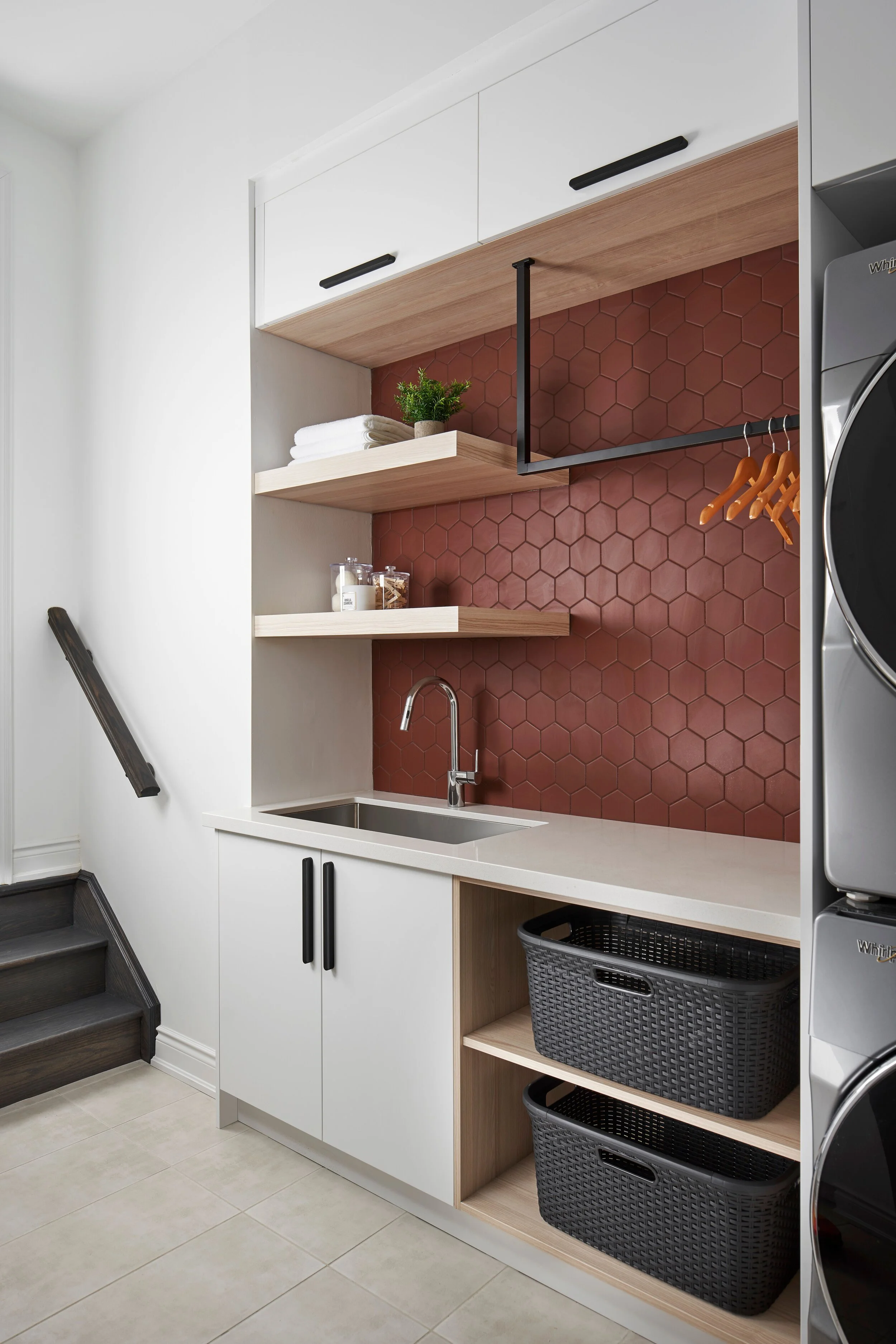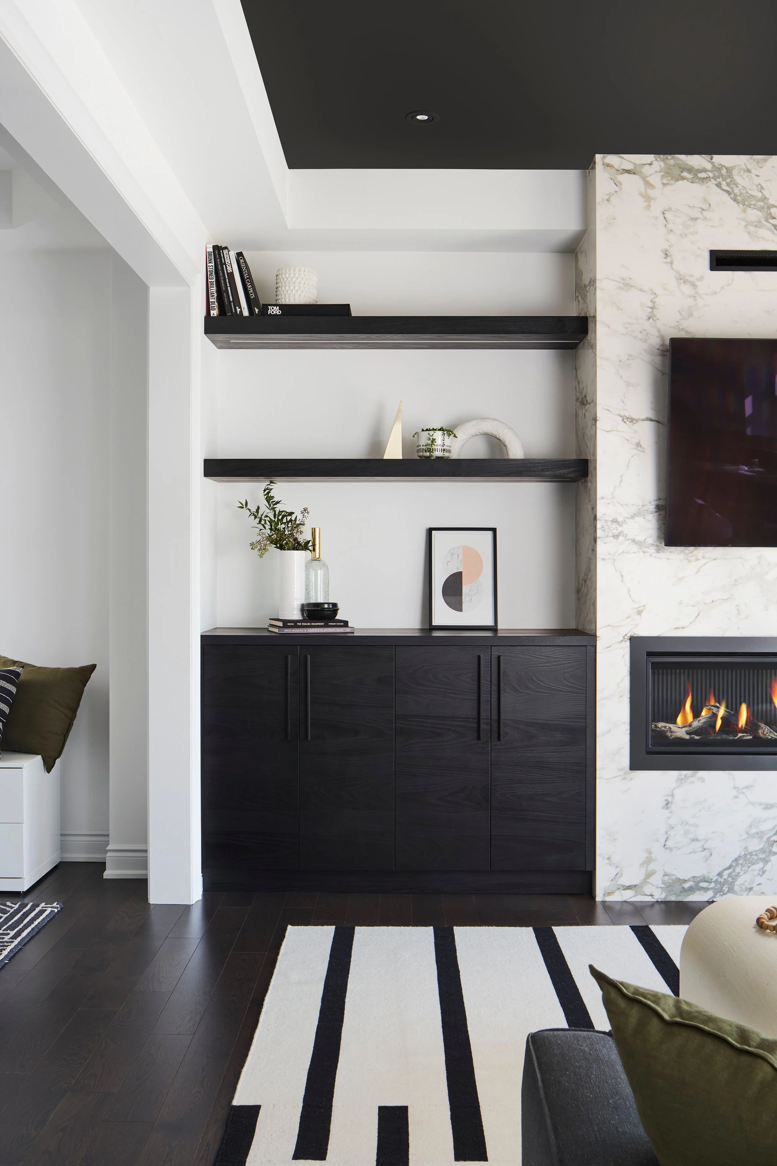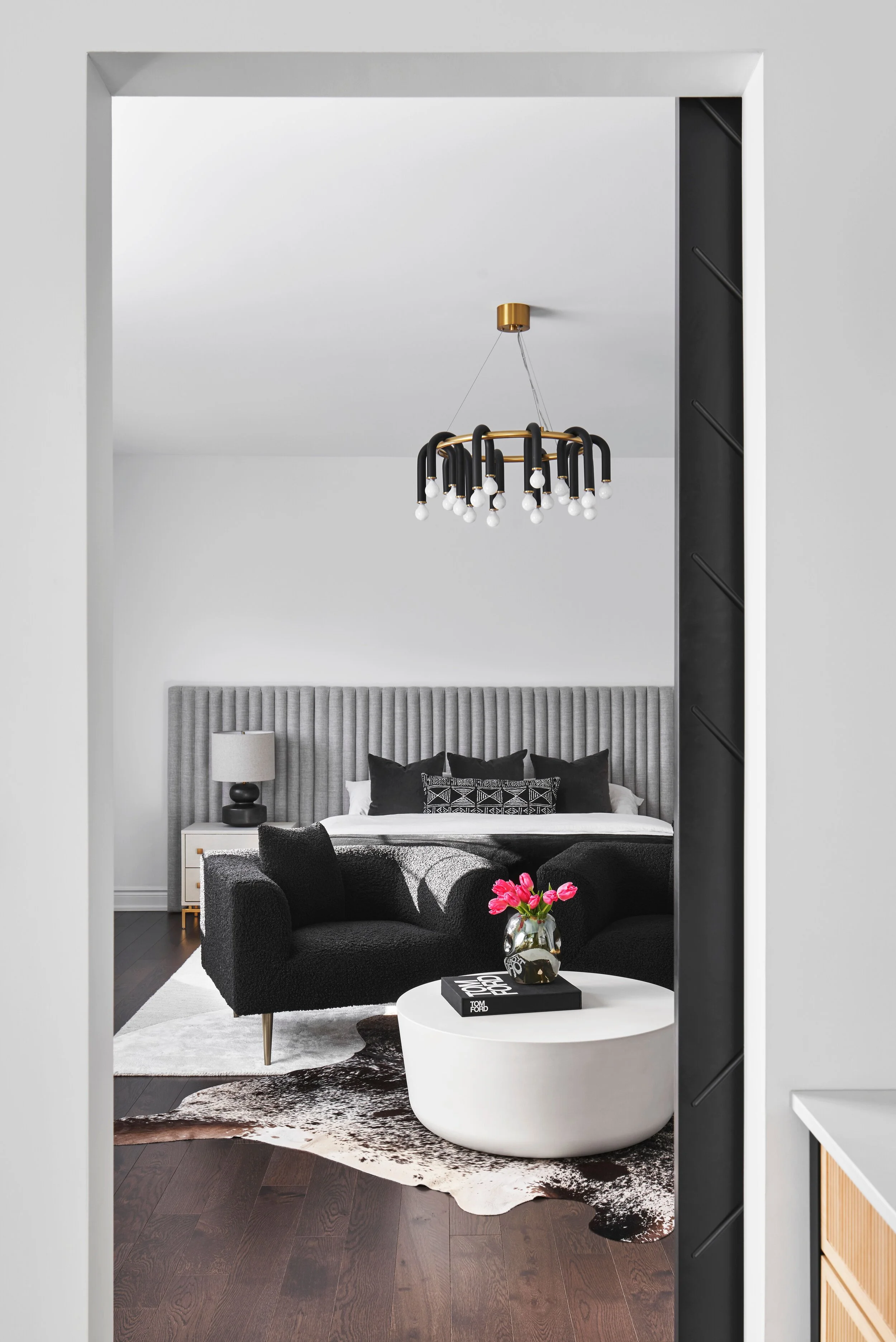 Our clients purchased a bland new build home that needed a huge infusion of character and interest. We wanted the home to reflect this young family's cool personality and be an unexpected punch when walking through the door. New finishes, fixtures and furniture all by avenue design inc.
