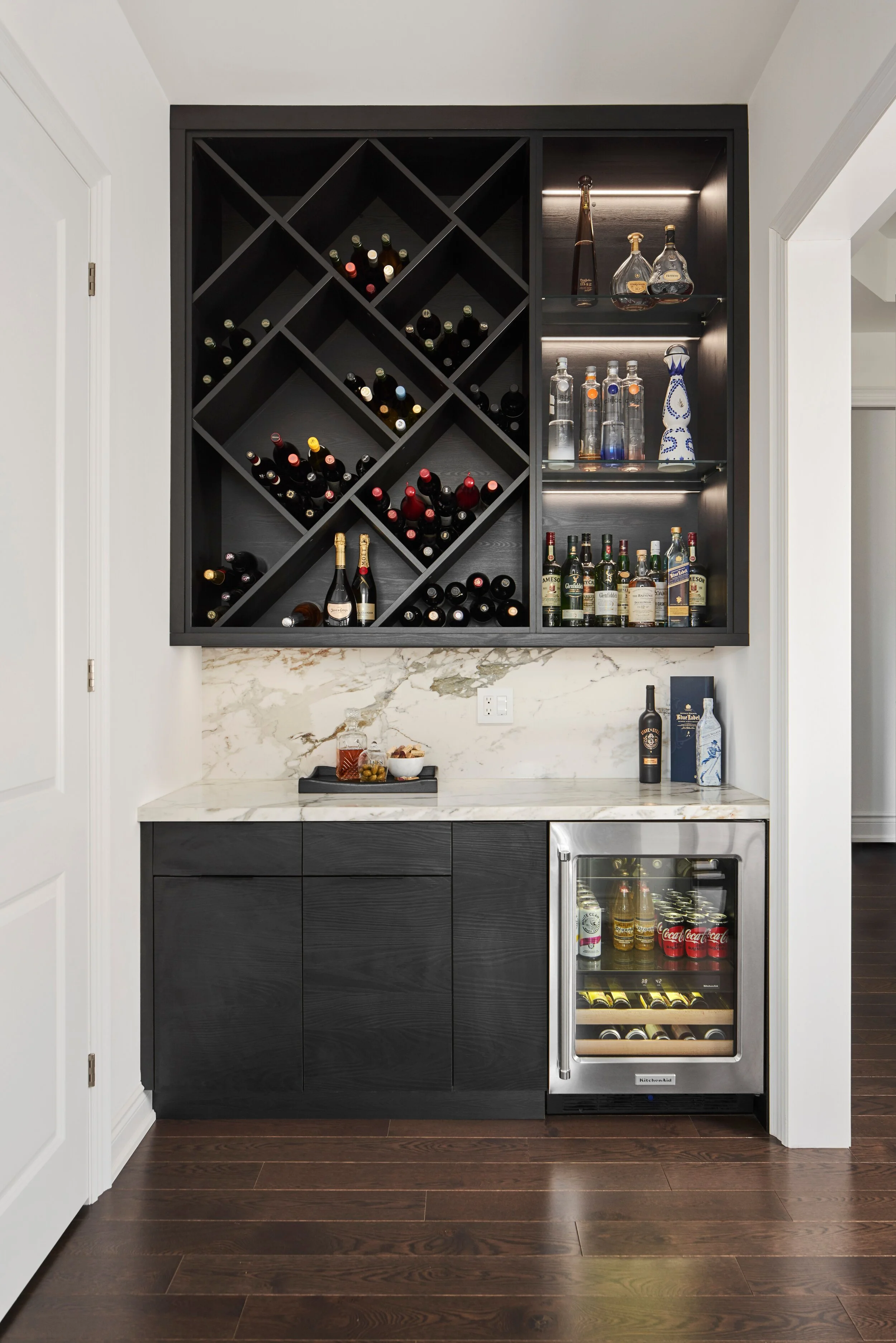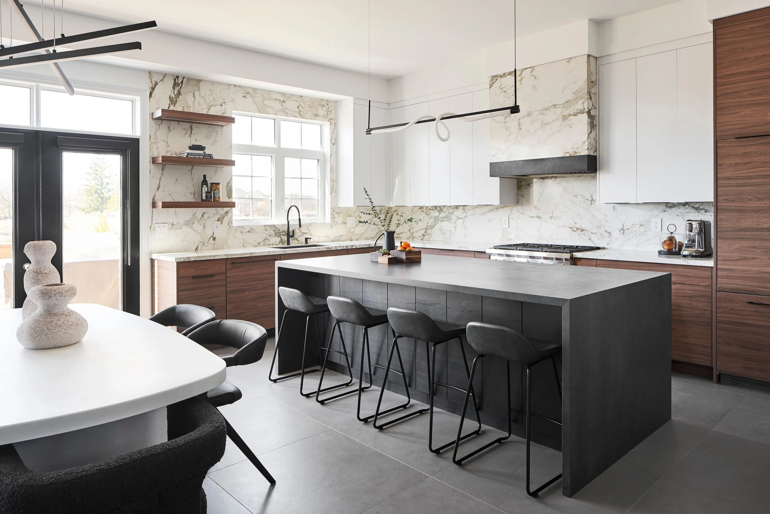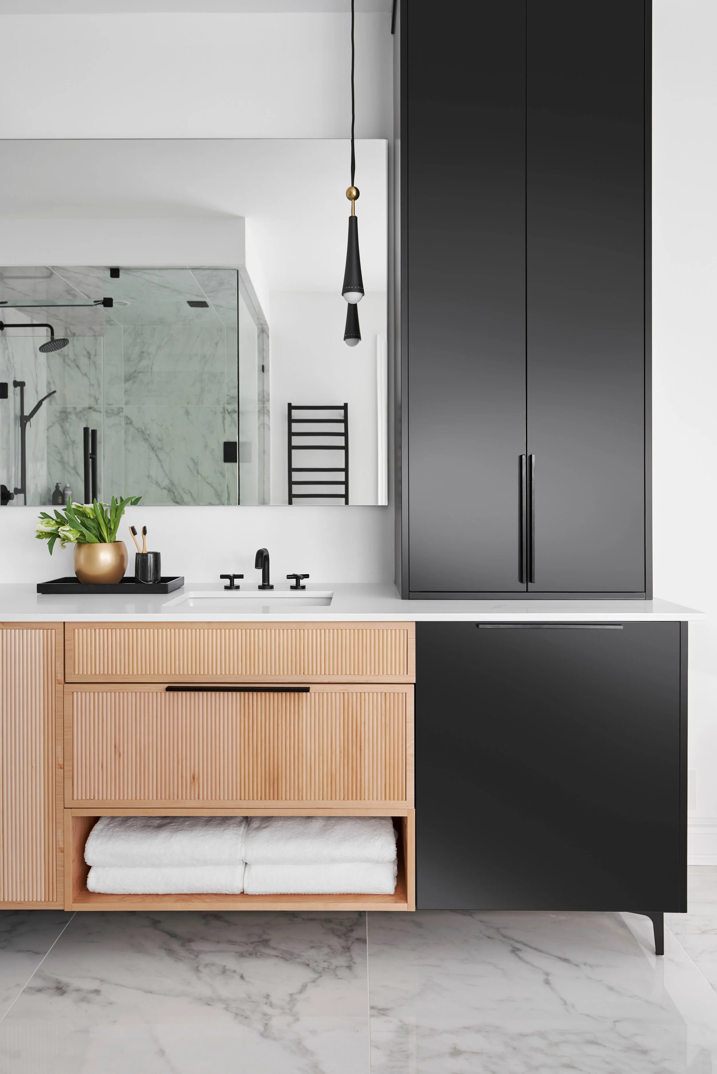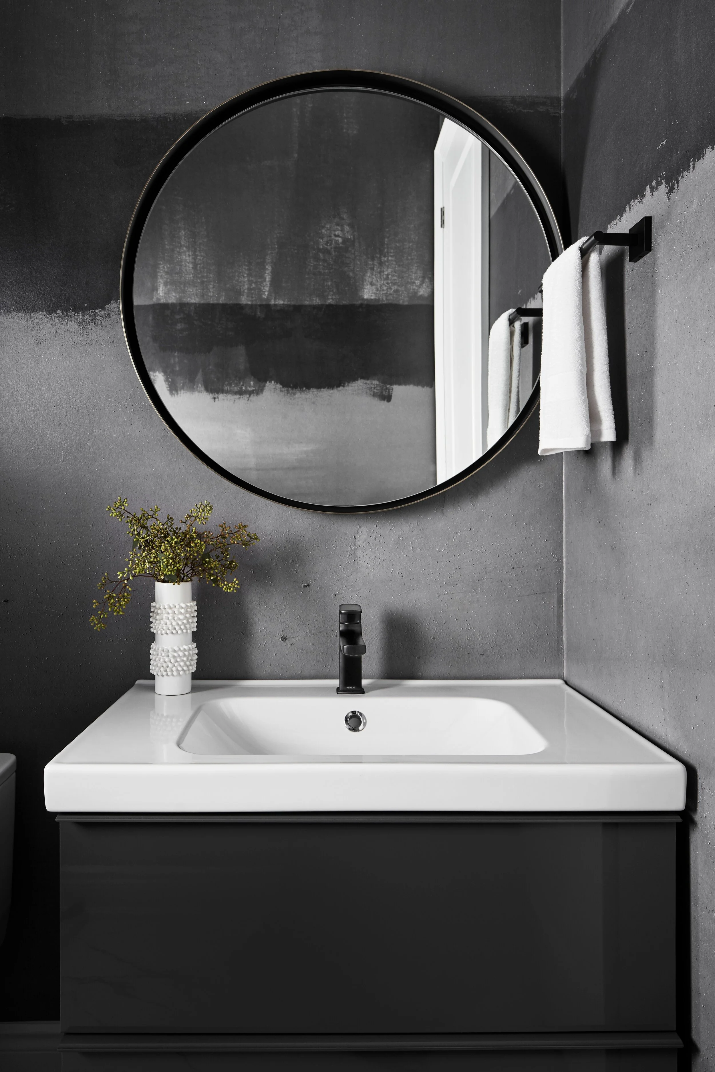 Our clients purchased a bland new build home that needed a huge infusion of character and interest. We wanted the home to reflect this young family's cool personality and be an unexpected punch when walking through the door. New finishes, fixtures and furniture all by avenue design inc.