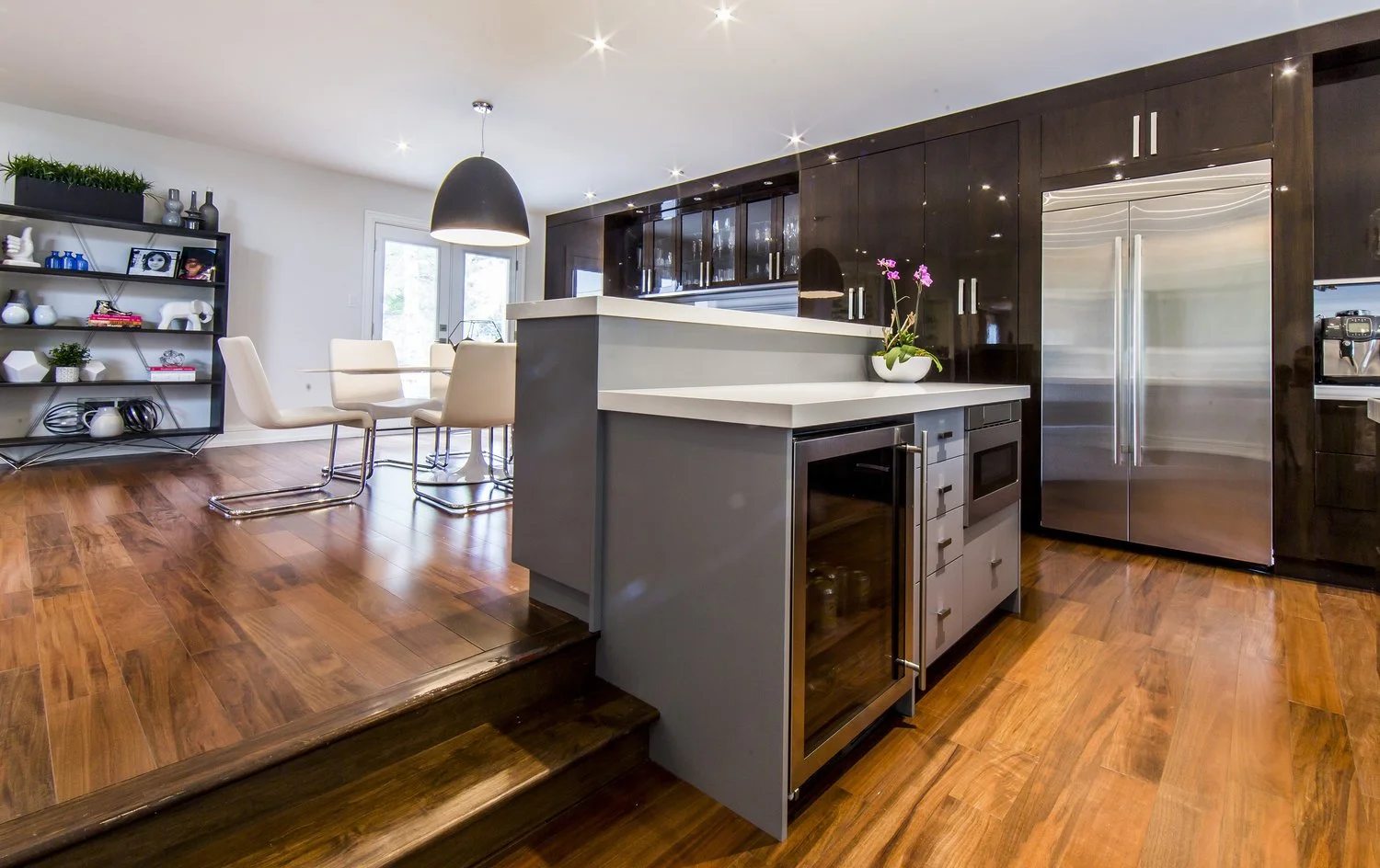 Avenue design was hired on to create a striking exterior, with a fresh and funky interior layout in the newly added front foyer area as well the main floor. Avenue design was in charge of layout, finishes and fixtures, millwork design and all furniture and accessories. Emphasis was placed on making the space entertainment friendly with warm elements and punches of colour throughout.