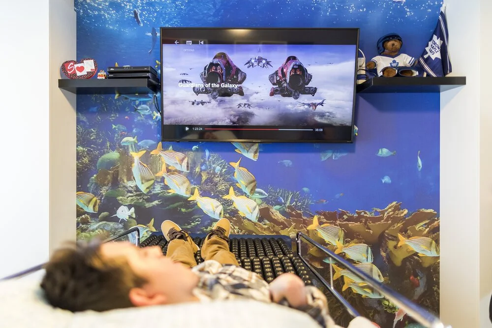 avenue design inc. was approached by the Children's Wish Foundation to create a special space for a very deserving young man. Kyle was born with cerebral palsy and has a host of other medical ailments that deter him from travelling. So instead of a dream trip to Disneyland or to a sport's game, we decided to overhaul his room. We set out to give him his own MAN CAVE - a space to not only alternatively stimulate or soothe him, but also a functional, organized and safe environment for his mother and care givers. A large portion of this room overhaul would not have been possible without the generous contributions of many trades and suppliers!