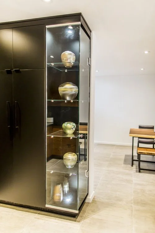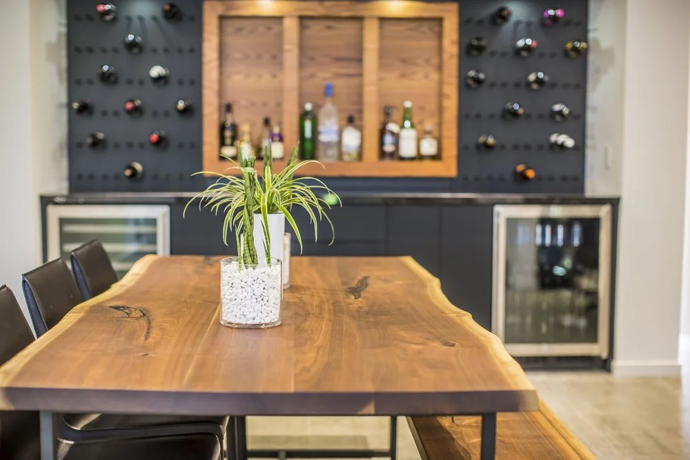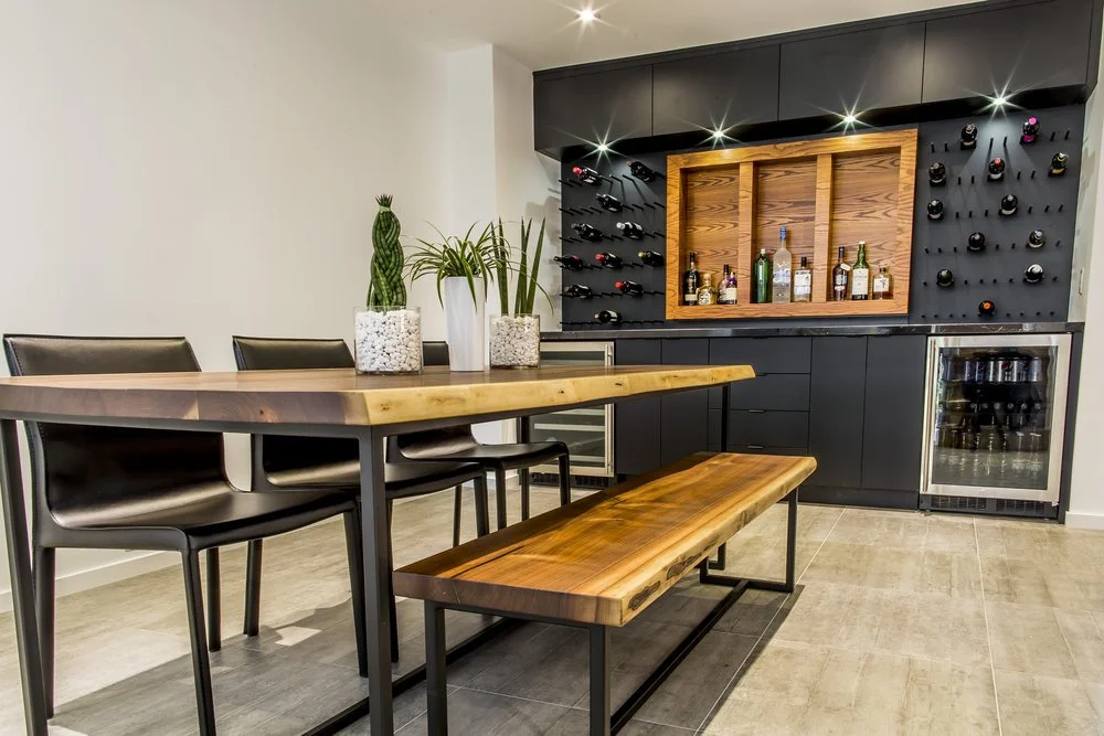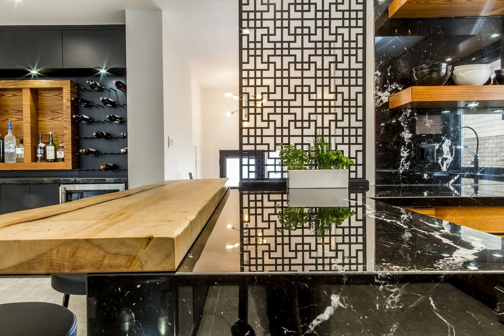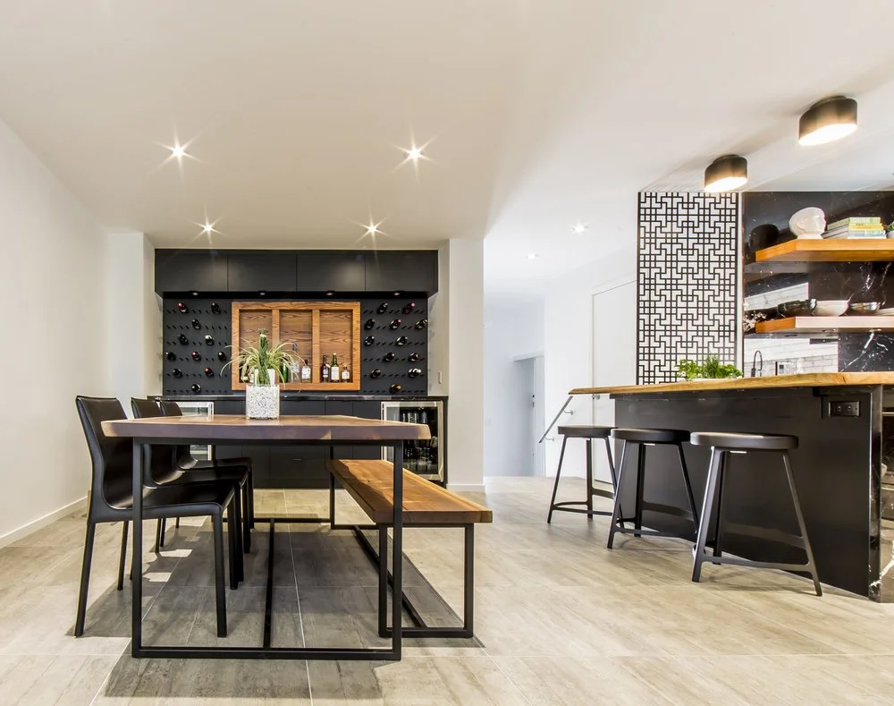 This house was inspired by our clients love of Japanese kutani ware. Infusion of Asian and modern elements help create a warm yet dramatic design. We layered concrete, live edge wood, and matte black finishes to create depth and dimension to this multi-use space. All interior design, finishes and fixtures designed by avenue design inc.