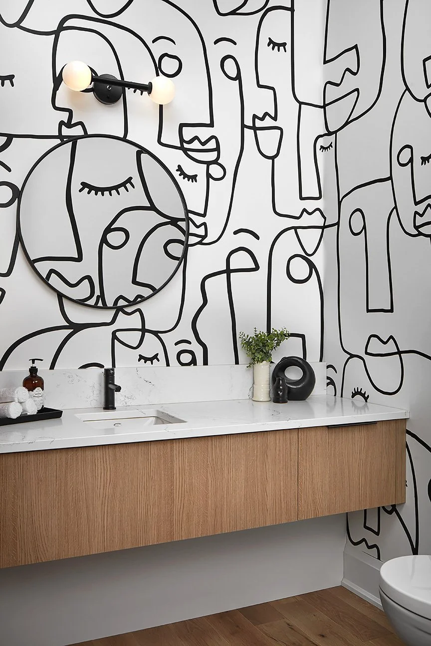 Custom designed and fully furnished model home for Niagara based builders, Kenmore Homes. Our design direction for this home was bright, airy and fun. By adding pops of colour and dimension through unexpected millwork tones, graphic wallpaper and art, we were able to interject a lively mood to an otherwise neutral space. All finishes, lighting and furniture designed by avenue design inc.